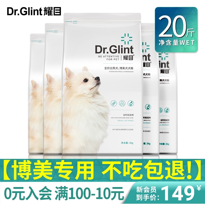 耀目博美狗食幼犬成犬小型犬專用美毛去淚痕棕色白色白毛斤